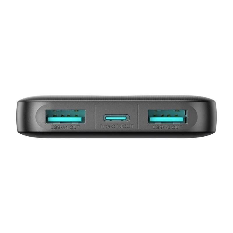 La batterie externe Joyroom JR-PBF13 est équipée de trois ports qui permettent de charger plusieurs appareils simultanément. Les ports USB-A et le port Type-C assurent une charge rapide.