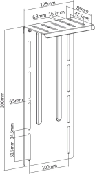 La compatibilité universelle avec les entraxes VESA standard 100×100 mm garantit une installation aisée. Le réglage en hauteur et la possibilité de montage avec l’étagère orientée vers l’avant ou vers l’arrière permettent d’adapter la position de l’équipement fixé à vos besoins.