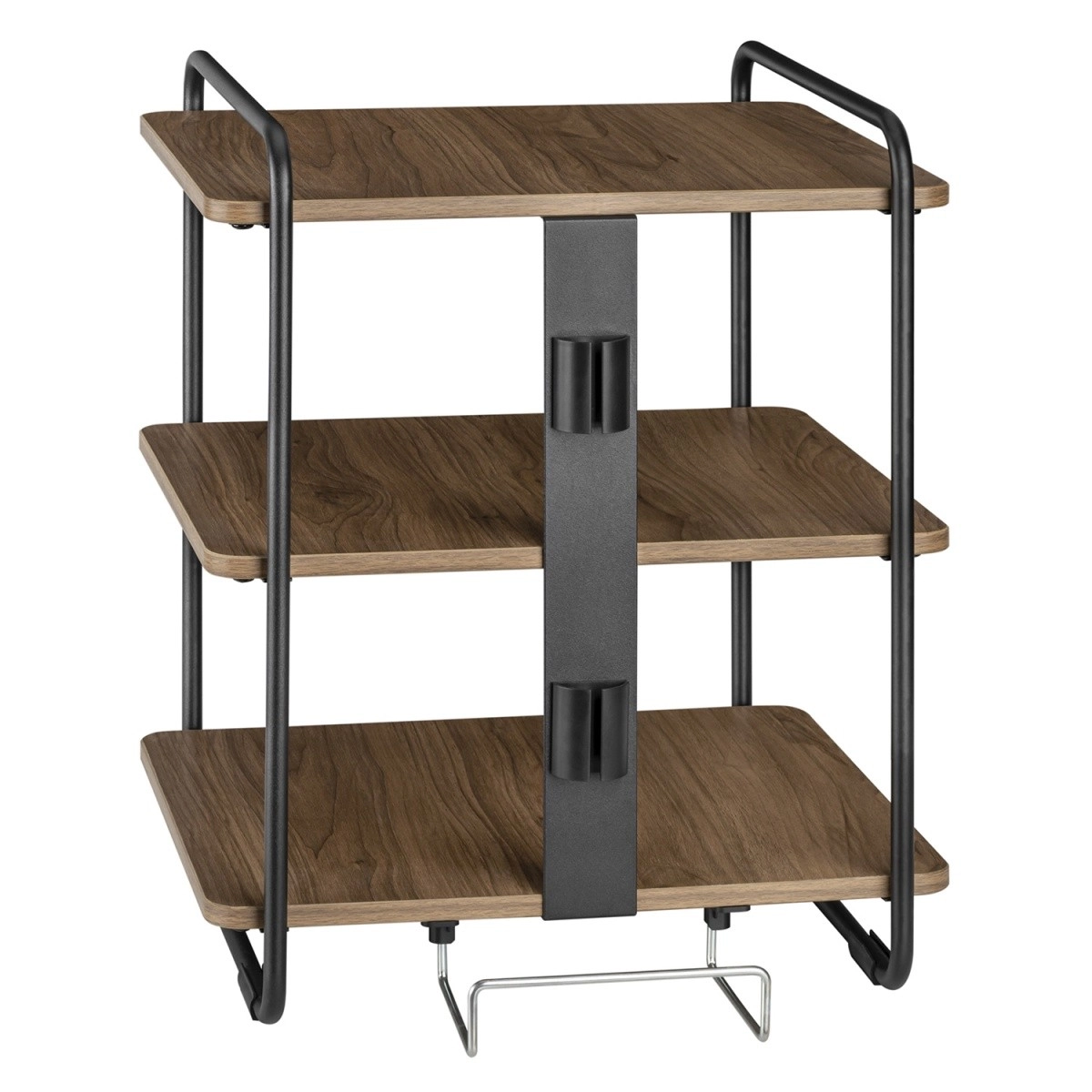 Cette armoire dispose de trois étagères spacieuses offrant beaucoup de place pour le rangement des livres, photos, décorations et autres objets à garder à portée de main. Grâce aux passe-câbles intégrés à l’arrière et au support pour multiprise, le système d’organisation de l’électronique, tels que lecteurs multimédias, barres de son, consoles ou amplificateurs, est simplifié.