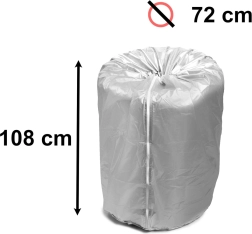 La housse est compatible avec des pneus d'un diamètre de 13 à 17 pouces, ce qui en fait une solution universelle pour la plupart des véhicules. La fermeture éclair assure une mise en place et un retrait faciles de la housse, tandis que le cordon inférieur permet une adaptation parfaite, augmentant la protection contre l'humidité et la poussière.