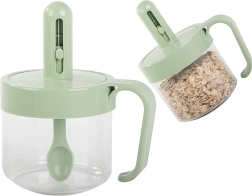 Cette boîte compacte en plastique résistant est conçue pour un usage quotidien dans la cuisine et le garde-manger. Le couvercle pratique avec cuillère extractible intégrée et curseur vous aide à mesurer avec précision sans autre ustensile. La fermeture hermétique protège le contenu de l’humidité et garantit une fraîcheur prolongée.