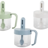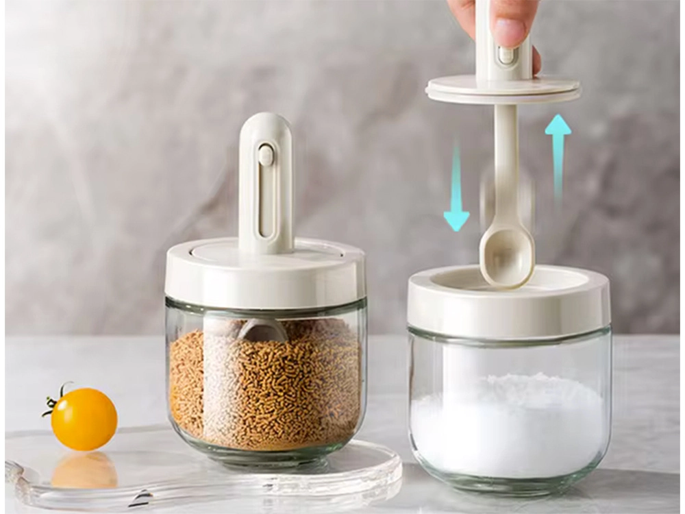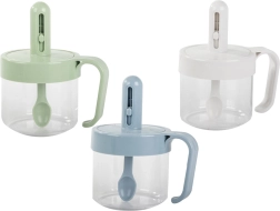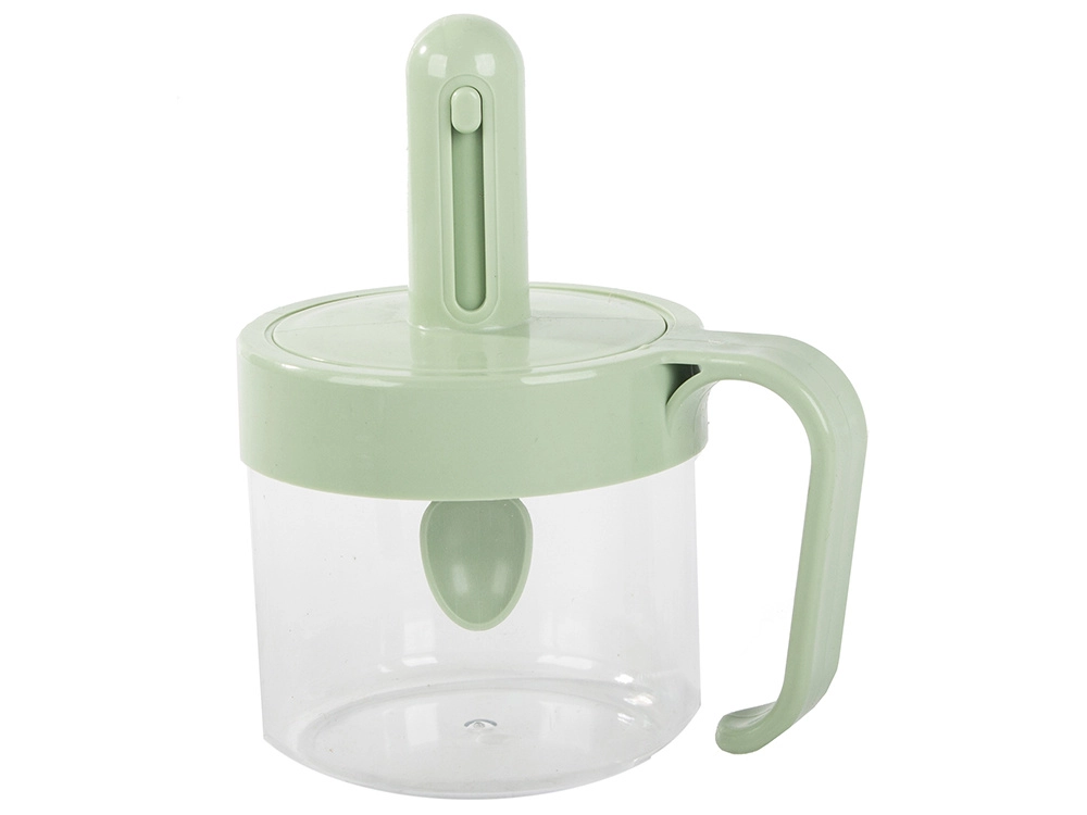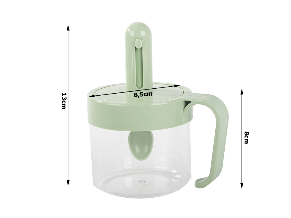 La cuillère intégrée dans le couvercle permet de mesurer avec précision le sel, le sucre ou les épices. À l’aide du curseur, réglez la dose idéale sans en renverser inutilement.