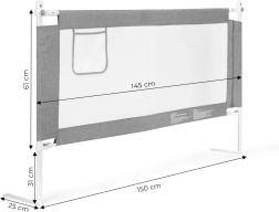 La barrière de lit de 150 cm de ECOTOYS protège les enfants contre les chutes tout en permettant aux parents un co-dodo confortable. Elle offre une hauteur réglable, une poignée supérieure rabattable pour un accès facile, une maille respirante et une poche pratique pour les petits objets. Montage universel, possibilité de raccorder plusieurs barrières et structure en acier robuste pour une durabilité et une sécurité maximales.