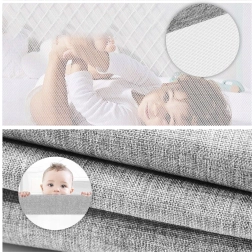 Le système de fixation universel facilite l’installation sur différents types de couchages et la possibilité de relier plusieurs panneaux crée un espace protégé tout autour du lit. La combinaison résistante d’acier, de PP et de textile de qualité garantit la stabilité et un entretien aisé – la housse est amovible et lavable.