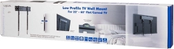 Support mural élégant et peu encombrant pour téléviseurs plats et légèrement incurvés de 32–65". Il offre un profil ultra fin pour un look épuré, un niveau à bulle intégré pour un alignement parfait et des patins en silicone pour éviter de rayer le mur. Grâce aux verrous à ressort avec sangle, la pose et le retrait du téléviseur sont rapides et sûrs.