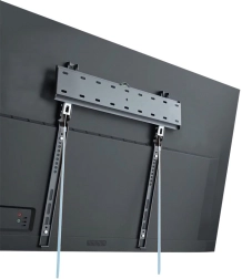 L’installation est simple grâce au niveau à bulle intégré pour un alignement précis et aux verrous à ressort intelligents avec sangle de tirage, qui permettent de verrouiller et de libérer le téléviseur aisément même après la pose. Les patins en silicone protègent la surface du mur et améliorent l’adhérence sans risque de rayures.