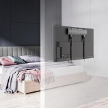 Le support rapproche le téléviseur du mur pour un design moderne et épuré, tout en offrant un maintien stable grâce à son cadre métallique robuste.