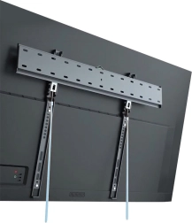 Pratiques, les verrous à ressort avec languettes permettent d’installer et de retirer l’écran en un instant – idéal pour la maintenance du câblage ou le remplacement de l’appareil. La construction métallique robuste assure stabilité et sécurité pour un large éventail de téléviseurs plats ou incurvés jusqu’à 80".