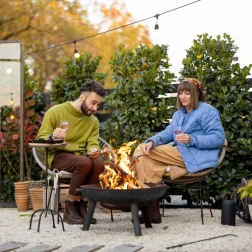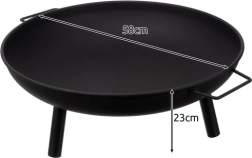 Pratique brasero de jardin de 60 cm de diamètre avec poignées latérales et trépied stable, il apporte chaleur et ambiance à votre jardin. Grâce à sa finition résistante à la chaleur, son montage rapide sans outils et sa structure en fer robuste, il est idéal pour la terrasse, le jardin et le chalet.