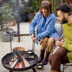Le montage est instantané – il suffit de visser à la main les trois pieds et en une demi-minute le brasero est prêt à l’emploi. Idéal pour créer une ambiance chaleureuse, se réchauffer ou griller simplement avec des amis.