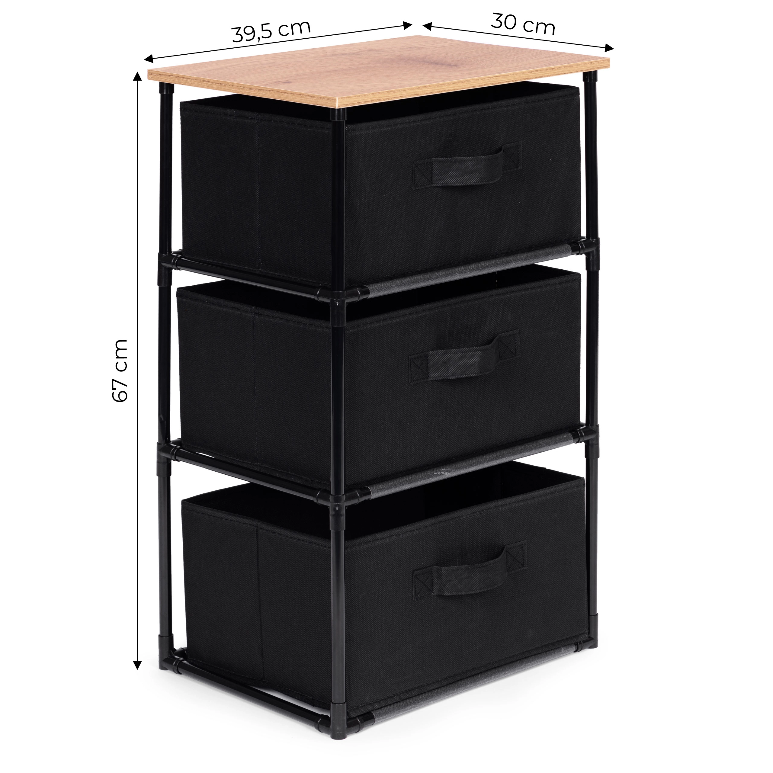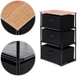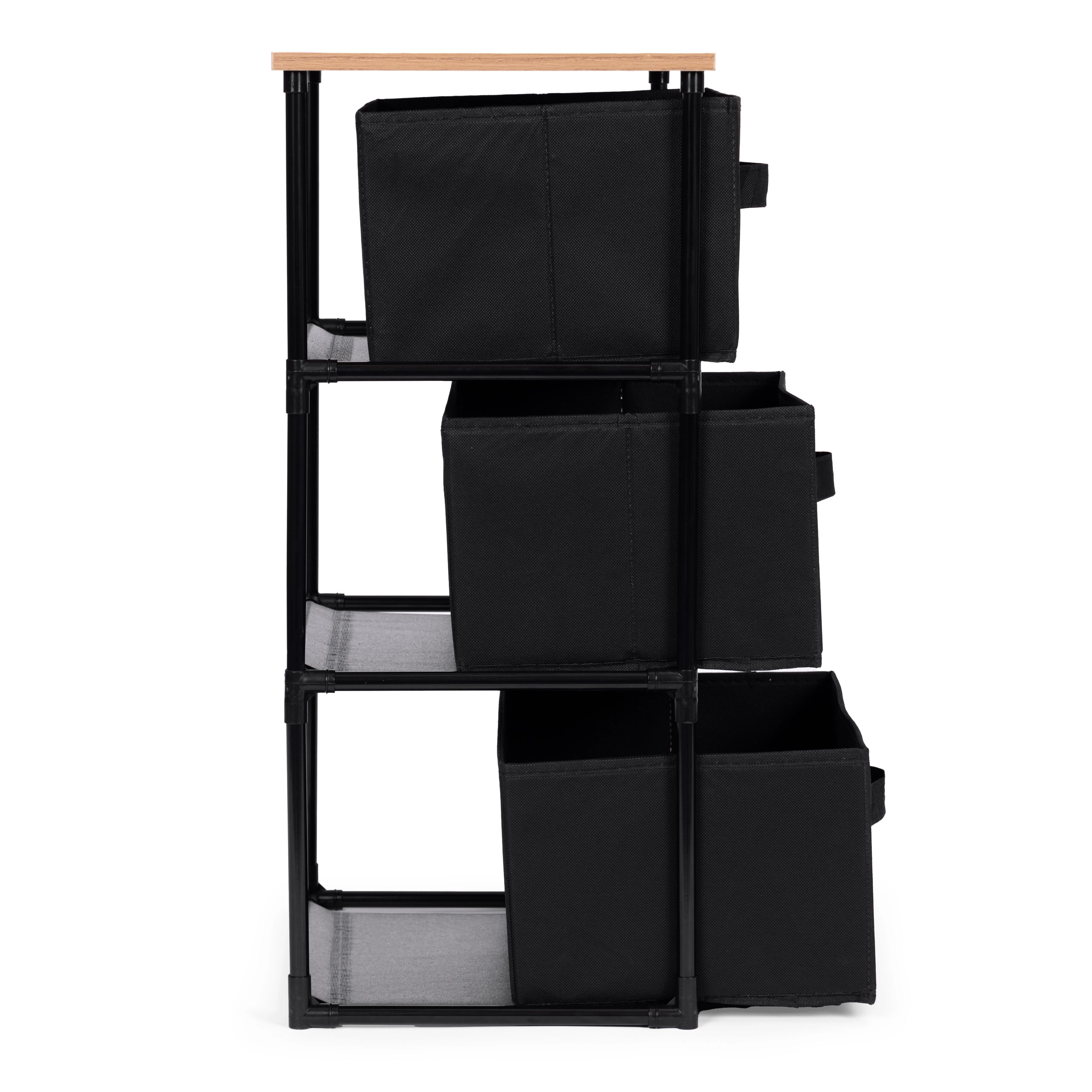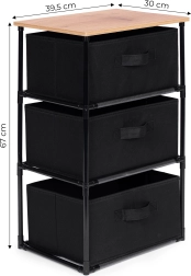 L’étagère comprend trois paniers amovibles en textile résistant, adaptés au rangement de vêtements, livres, jouets et autres objets, avec un accès facile grâce aux poignées pratiques.