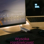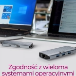 La station d’accueil de bureau 6-en-1 est une solution idéale pour le travail et les déplacements, offrant de nombreuses options de connexion via USB Type-C. Elle prend en charge une sortie vidéo 4K et assure une connexion fiable via Gigabit Ethernet.