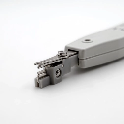 Outil à percussion professionnel LSA/KRONE pour une terminaison rapide et précise des conducteurs dans les prises téléphoniques et réseau. Offre un sertissage fiable, une coupe automatique des excédents et une grande robustesse grâce à l’acier trempé et au corps en ABS. Convient aux conducteurs pleins et toronnés, câbles blindés et non blindés.