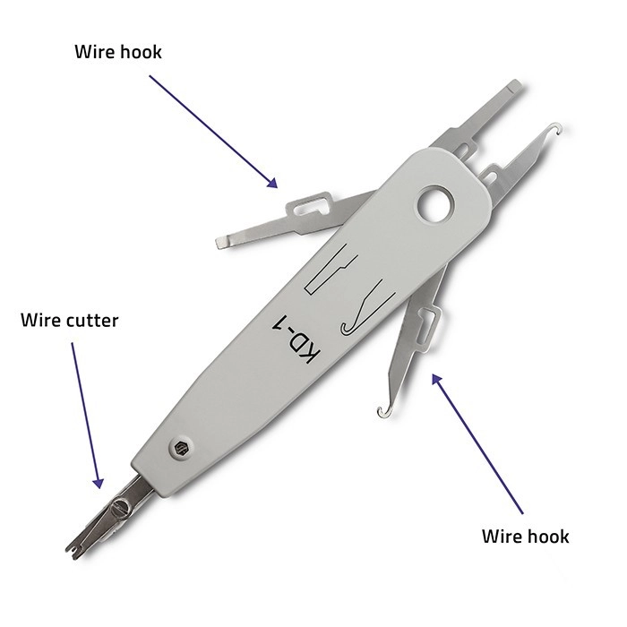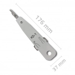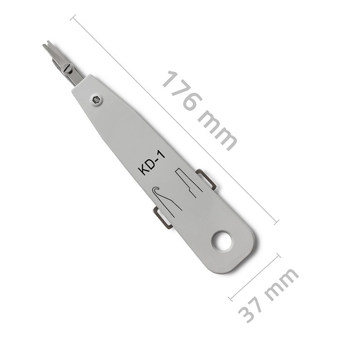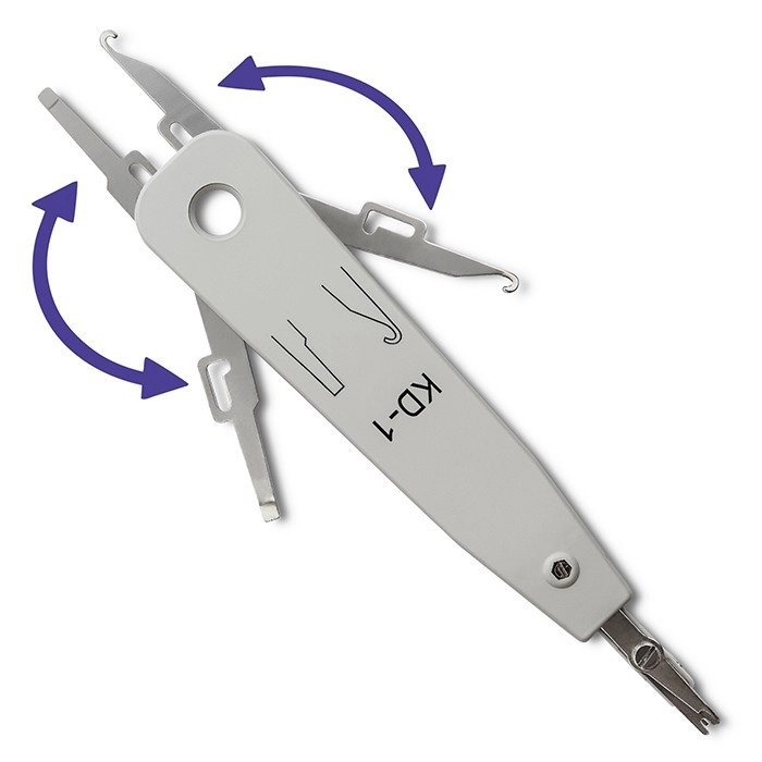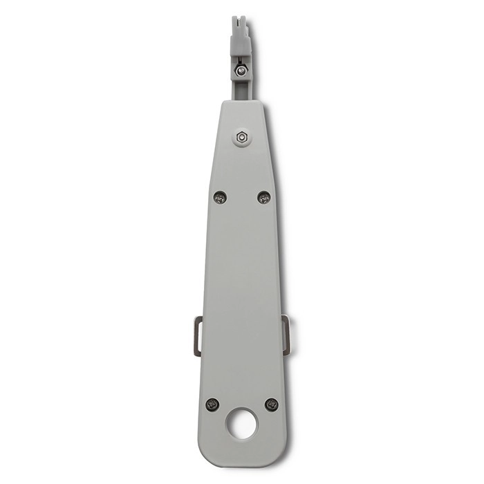 Le corps en plastique ABS résistant garantit une prise en main confortable et une longue durée de vie, même en usage quotidien. Deux éléments latéraux rétractables facilitent le passage et l’extraction des conducteurs, accélérant le travail lors des terminaisons sur panneaux de brassage et prises.