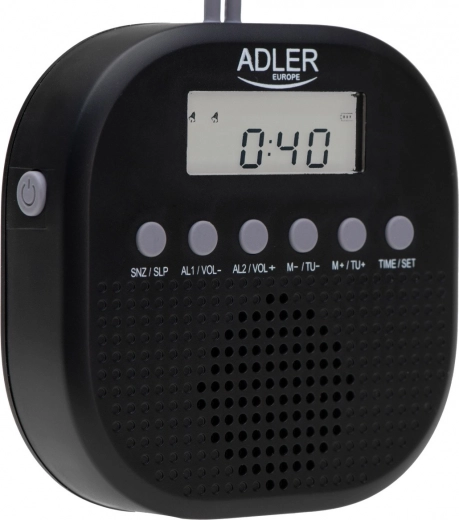 La radio ADLER AD 1912, compacte et élégante, bénéficie de la certification IPX4 et est idéale pour la douche, les escapades et l’usage quotidien. Elle propose la radio FM, une heure numérique claire, deux alarmes indépendantes, une fonction snooze/minuteur 10–90 min et une alimentation par piles pour une mobilité maximale. Grâce à sa anse en silicone élastique, vous pouvez la suspendre facilement où vous en avez besoin.