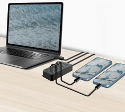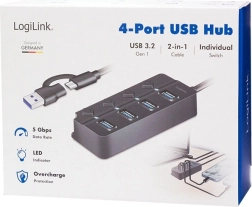 Profitez de vitesses de transfert fulgurantes jusqu’à 5 Gbit/s grâce aux ports USB 3.2 Gen 1. Idéal pour les gros fichiers, les vidéos en haute résolution et les applications exigeantes. Chaque port dispose de son propre interrupteur, permettant d’activer ou de désactiver sélectivement chaque appareil sans affecter les autres. Un indicateur LED affiche l’état de chaque port en un coup d’œil. Un adaptateur secteur 5 V/3,5 A (17,5 W) est inclus, garantissant une alimentation stable même pour les appareils gourmands.