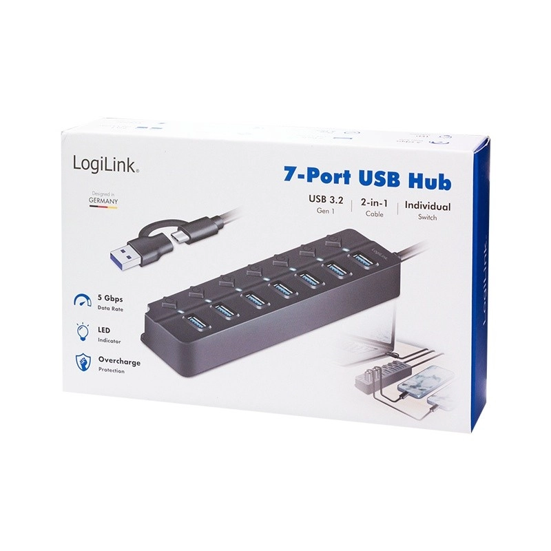 Étendez la connectivité de votre ordinateur avec le hub USB LogiLink 7 ports, qui offre des fonctions avancées et une grande flexibilité. Chaque port peut être activé ou désactivé individuellement, assurant une personnalisation maximale selon vos besoins. Grâce à la prise en charge de l’USB 3.2 Gen 1, vous pouvez atteindre des vitesses de transfert allant jusqu’à 5 Gbit/s, permettant des transferts rapides de fichiers volumineux et le streaming en qualité HD.