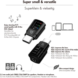 Les appareils modernes manquent souvent de prise audio standard 3,5 mm, mais ce n'est plus un problème avec l'adaptateur audio USB-C de LogiLink. Branchez simplement cet adaptateur au port USB-C de votre smartphone ou tablette et la prise jack 3,5 mm de vos écouteurs à l'adaptateur. Grâce au Décodage DAC et support PCM/DSD, cet adaptateur offre une qualité sonore nettement améliorée et rendra votre musique préférée encore meilleure.