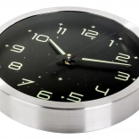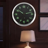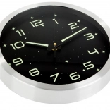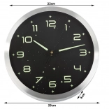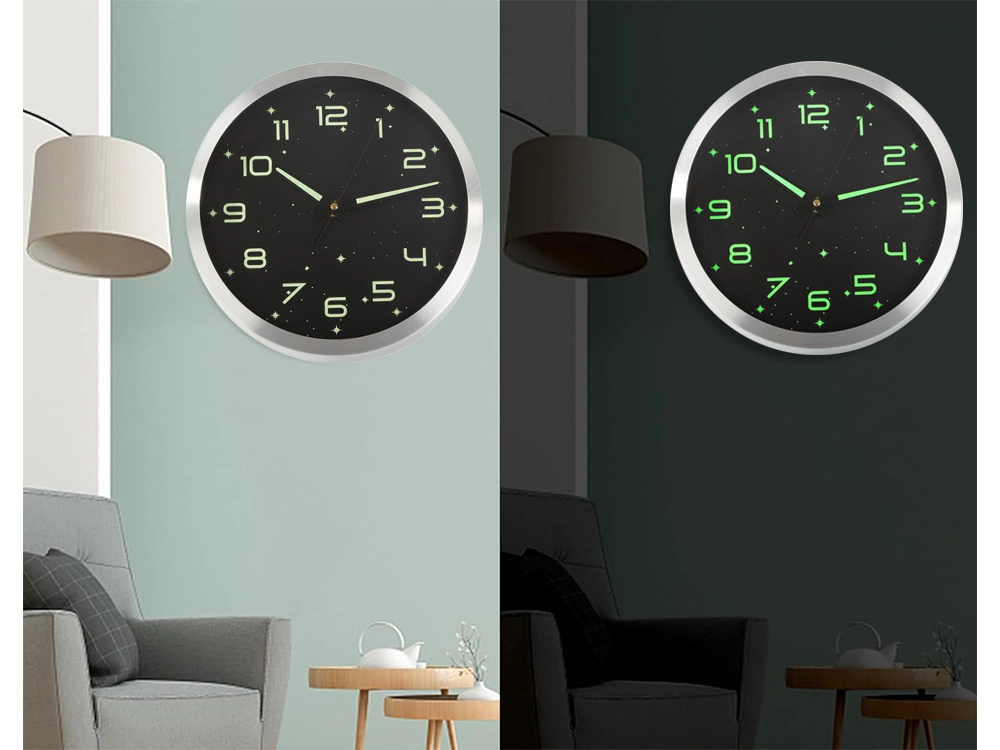Cette horloge murale au design moderne allie fonctionnalité et esthétisme. Le cadran noir avec des éléments lumineux assure une excellente lisibilité dans l’obscurité après exposition à la lumière, tandis que le cadre argenté métallique apporte une touche élégante à votre intérieur. Son mécanisme silencieux sans tic-tac ne gêne ni le sommeil ni le travail.