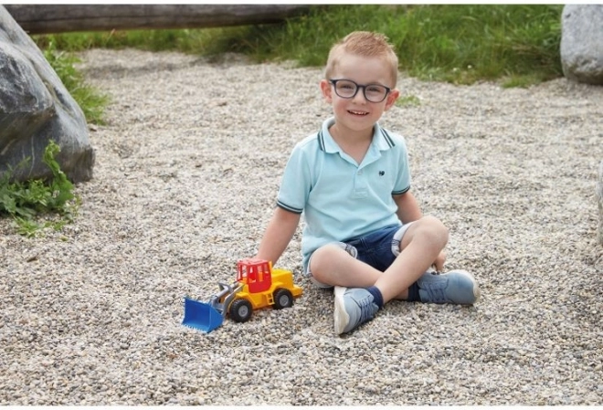Cette chargeuse en plastique Lena offre un look réaliste et un fonctionnement mécanique fiable sans piles. Les enfants manipulent facilement le godet et le bras, développant leur motricité fine et leur imagination en construisant des routes, en transvasant du sable ou en transportant de petits jouets.