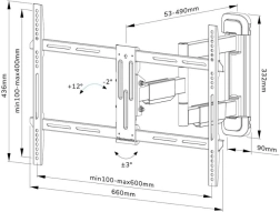 Avec une profondeur de 5,3 à 49 cm, il convient aux écrans répondant aux normes VESA de 100x100 à 600x400 mm. Ce support est idéal pour diverses pièces et facilite un positionnement optimal de l’écran.
