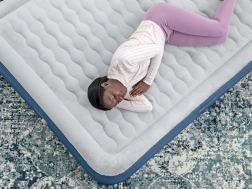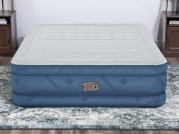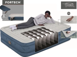 Il est équipé d’une pompe électrique intégrée 220–240 V, qui gonfle le matelas en environ 3 minutes. Pour les lieux sans électricité, il est possible d’utiliser une pompe manuelle ou à pied. Une valve de sécurité aide à maintenir la pression et empêche les fuites d’air. La charge maximale est de 350 kg, garantissant une fiabilité même en cas d’utilisation intensive.