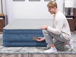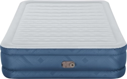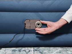 La pompe électrique intégrée 220–240 V gonfle le lit en environ 3 minutes. Il est également possible de compléter le gonflage manuellement/à pédale en l’absence d’électricité.