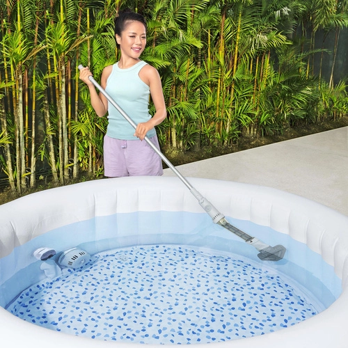 Maintenez une eau cristalline sans effort. L’aspirateur sans fil BESTWAY est conçu pour les petites piscines hors-sol et les spas, où il aspire de manière fiable sable, feuilles et sédiments. Grâce au manche télescopique léger, vous atteignez aisément tous les recoins et formes de la piscine.