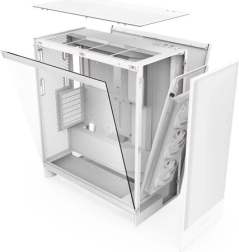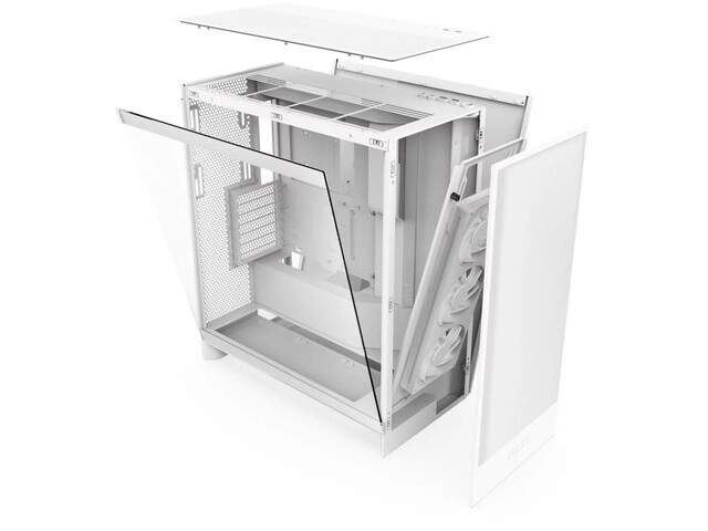 Le NZXT H7 Flow RGB redéfinit le mid‑tower classique avec un nouveau standard de refroidissement. La disposition verticale de l’alimentation libère de l’espace pour trois ventilateurs 120 mm en bas, qui propulsent l’air directement vers la carte graphique. Les panneaux maillés à haute perméabilité maximisent le débit d’air en entrée et en sortie tout en capturant la poussière pour un environnement durablement propre.