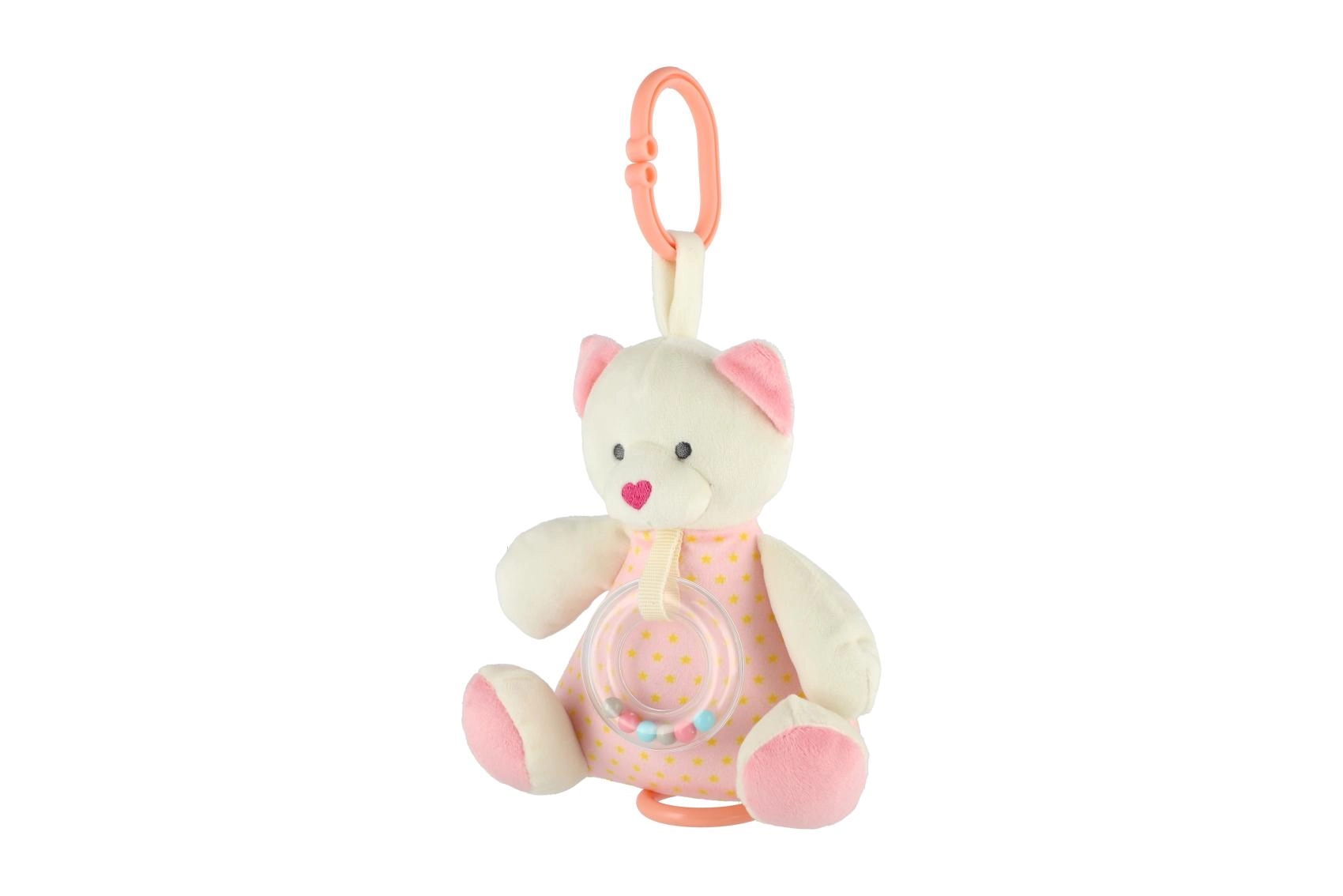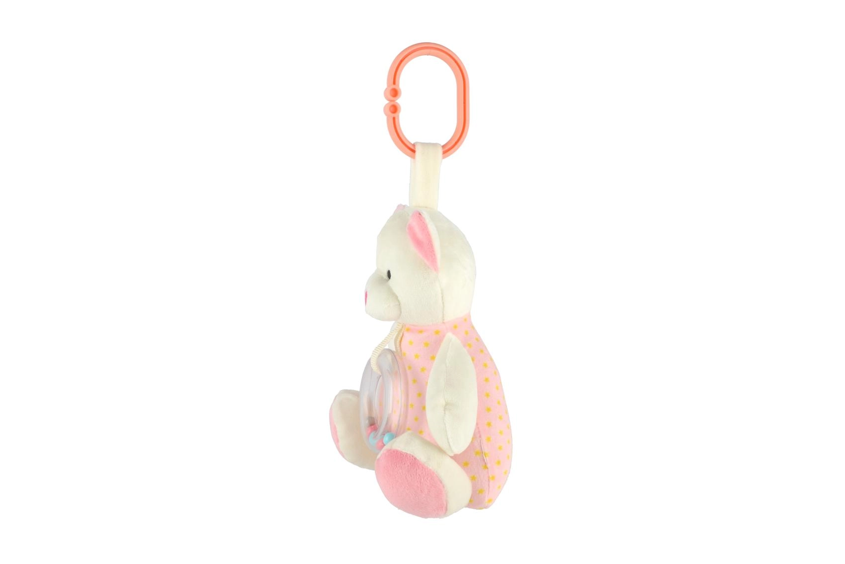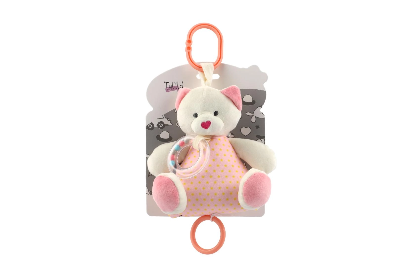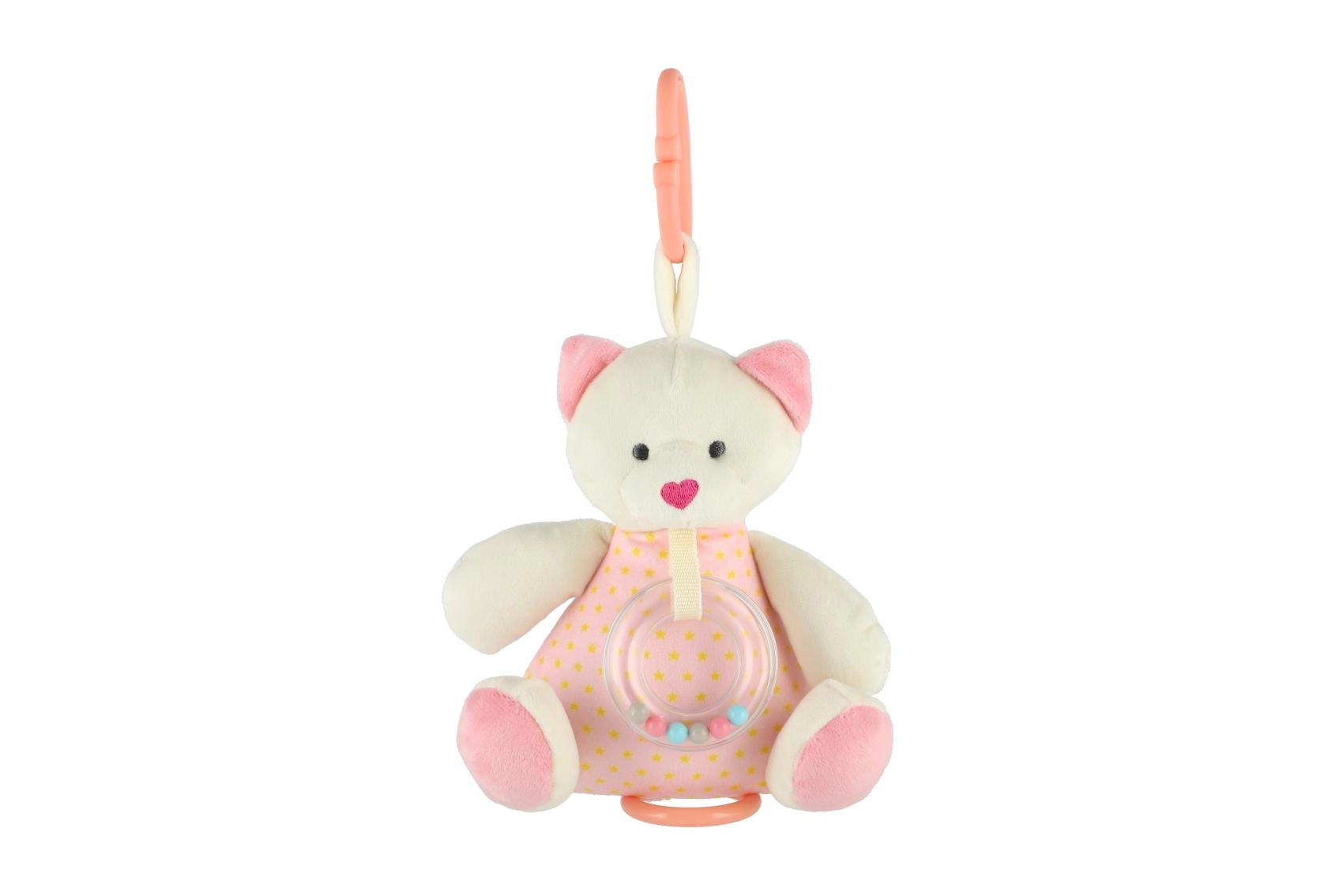 Adorable ourson en peluche musical de 18 cm dans une douce teinte rose, offrant un son apaisant, des matériaux tout doux et une conception sûre sans bords tranchants. Un compagnon idéal pour le lit comme pour la poussette, qui aide les enfants à s’endormir plus facilement et à développer leurs sens grâce à des textures douces et à un hochet discret.