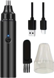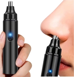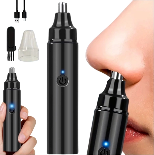 Tête de sécurité en acier inoxydable : Protège la peau contre les irritations et offre une coupe précise et douce des poils du nez.
