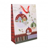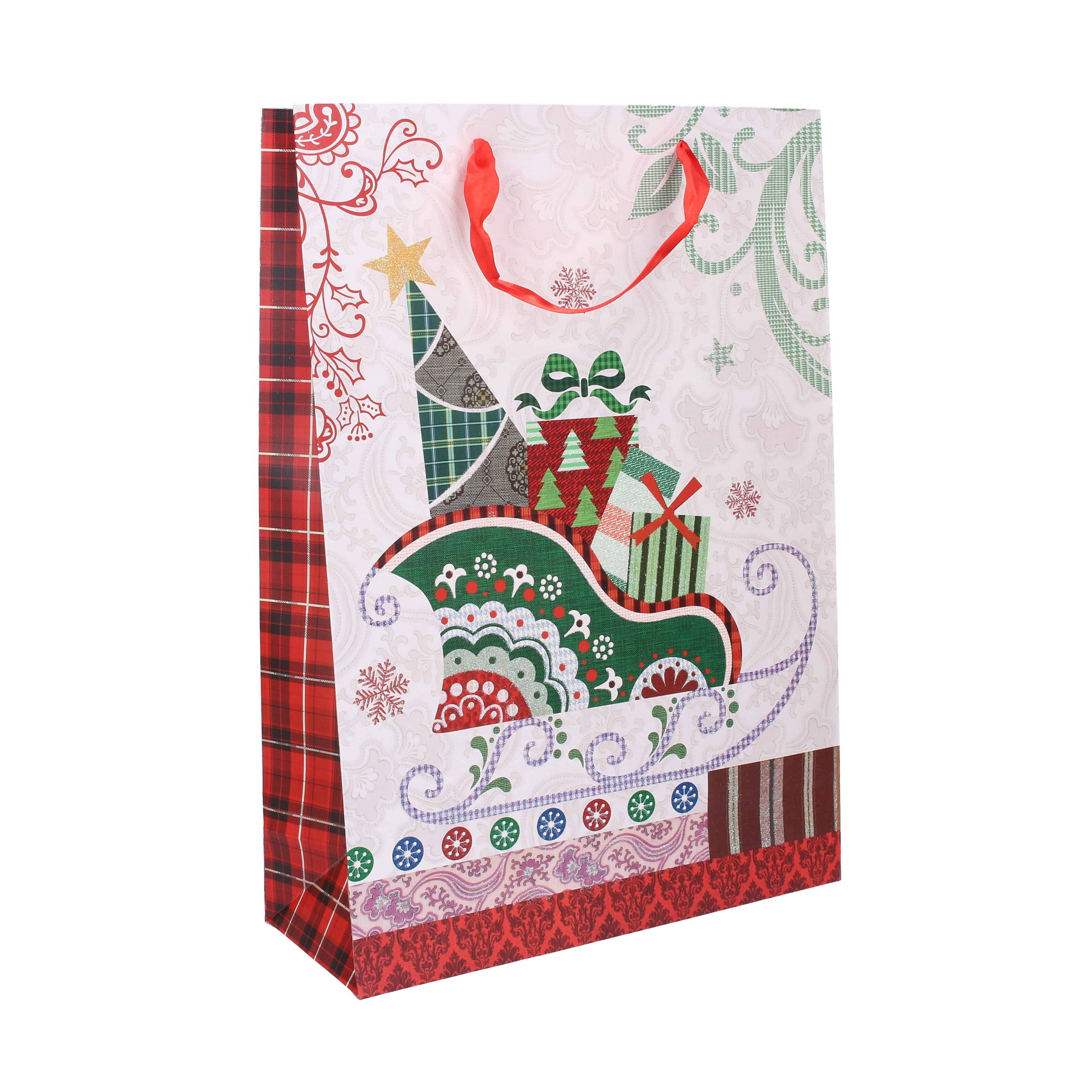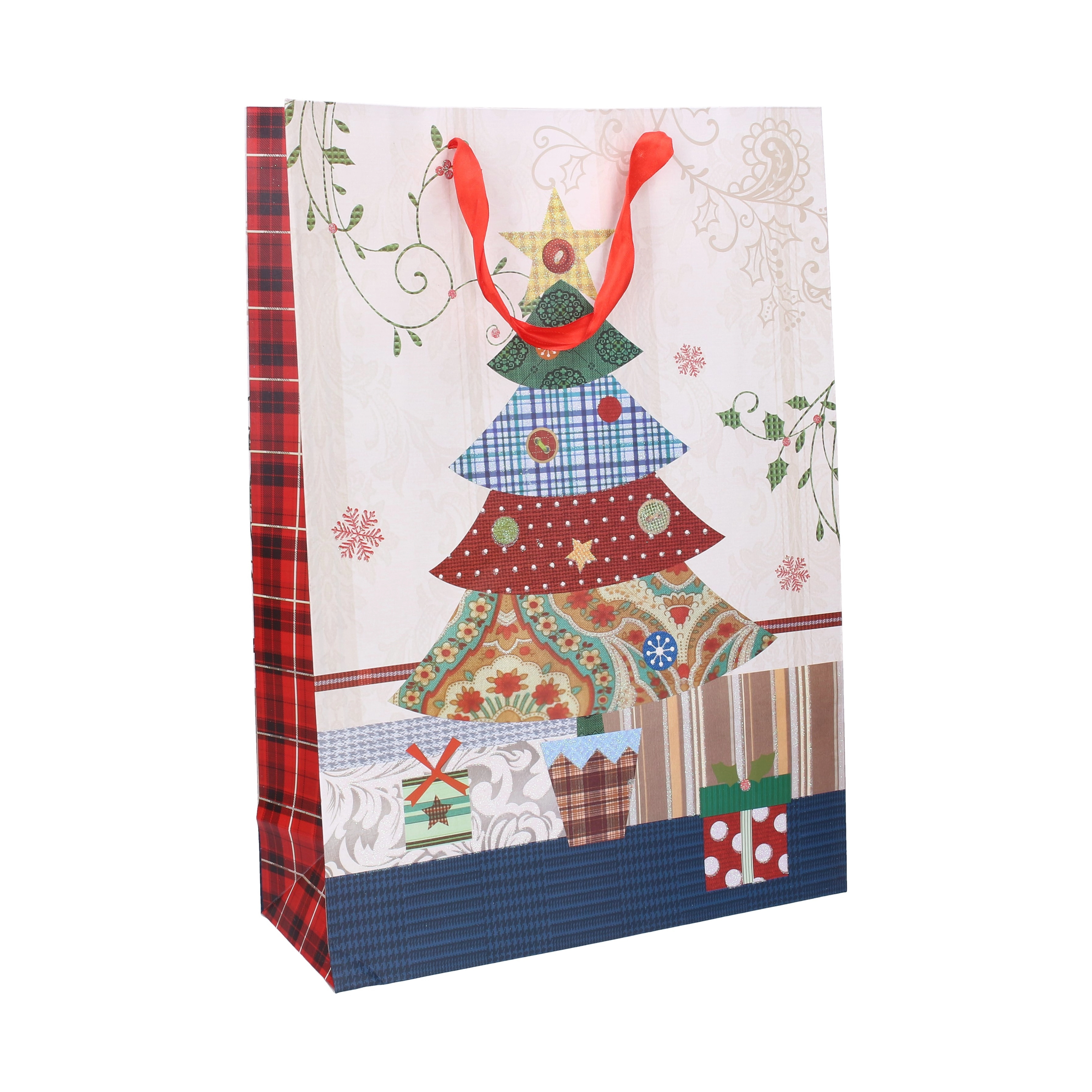 Le sac cadeau en papier avec motif de Noël est un choix idéal pour emballer rapidement et avec esthétique vos présents. Grâce à ses dimensions généreuses, il accueille confortablement des objets volumineux et sa fabrication solide garantit un transport en toute sécurité.
