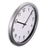 Horloge murale avec cadran blanc de 30 cm de diamètre, facilitant la lecture de l’heure. Les chiffres arabes et la trotteuse sont bien visibles même à plus grande distance, ce qui en fait un choix idéal pour toute pièce.