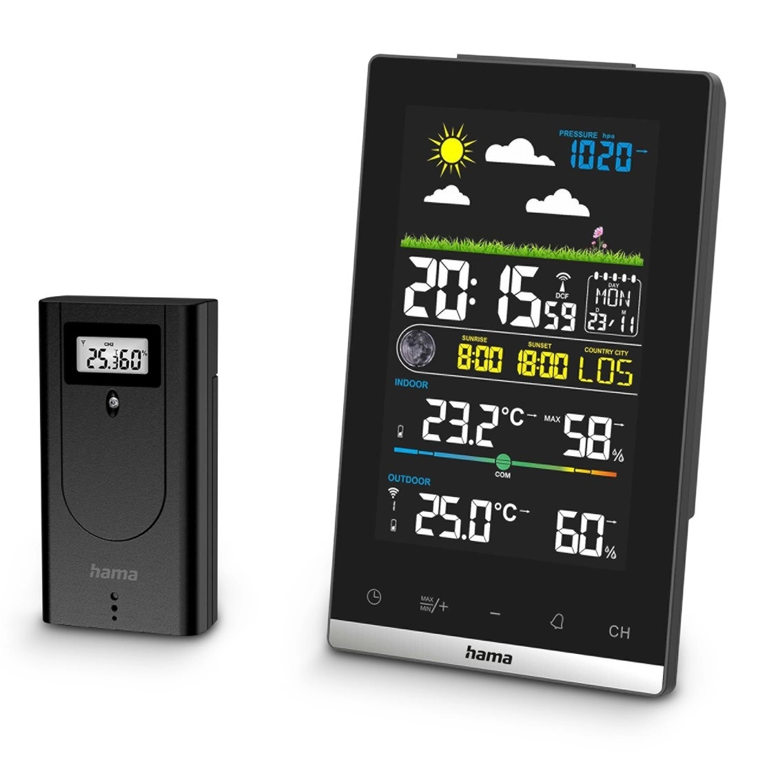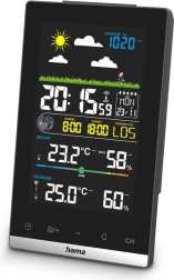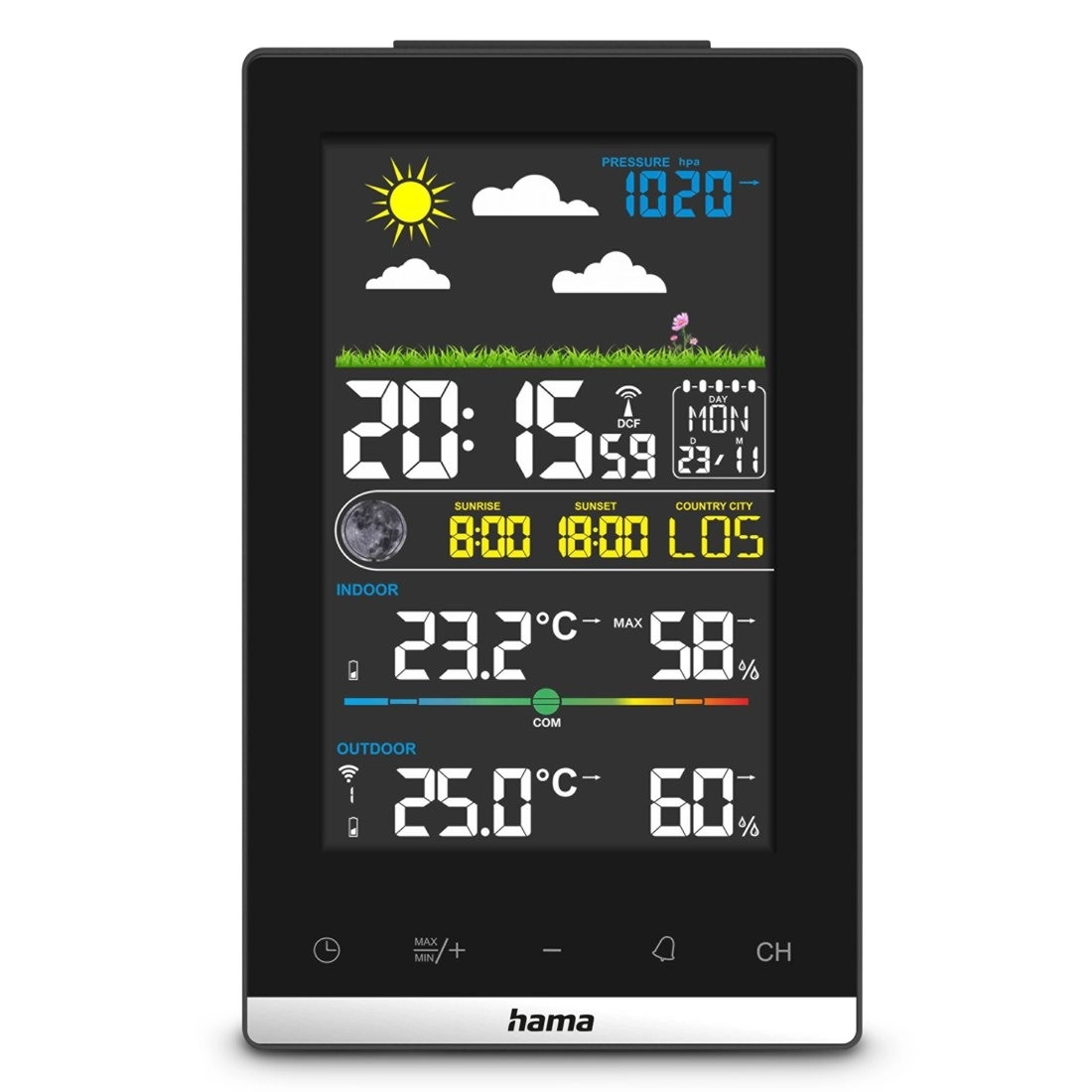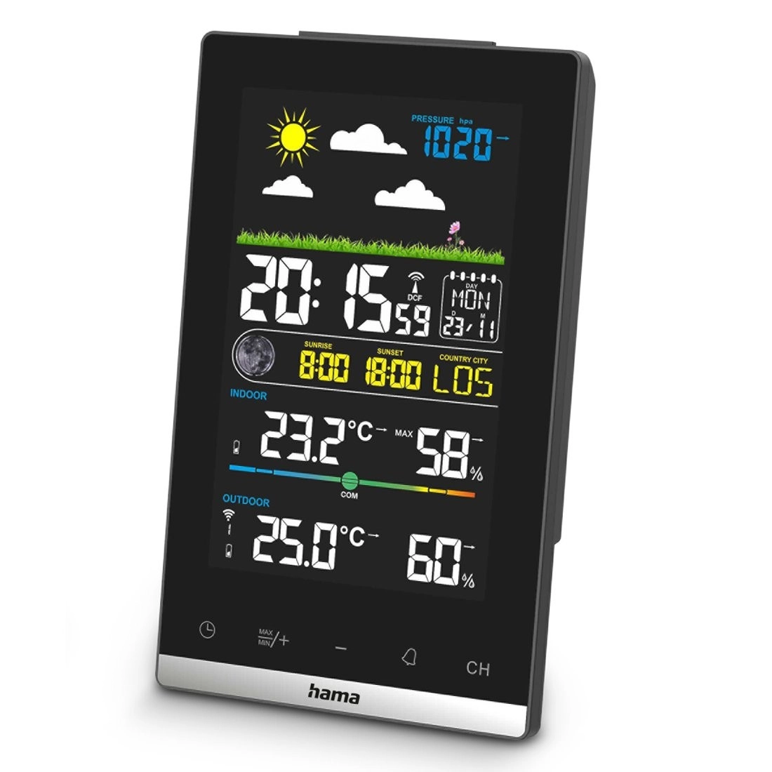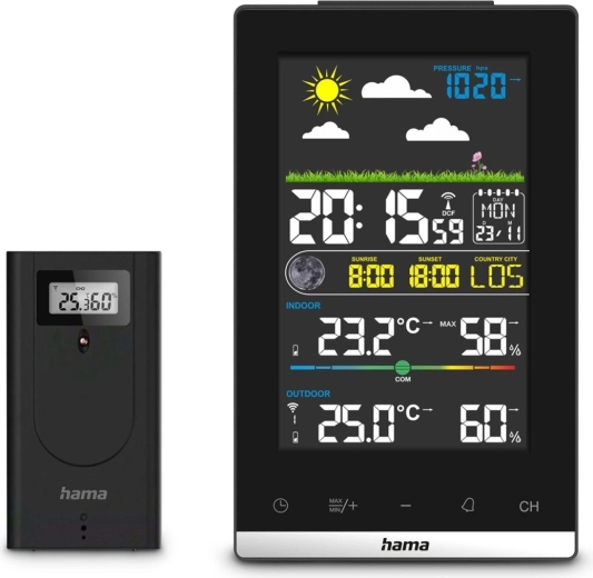 La station météo HAMA Jamaica offre une planification quotidienne sereine grâce à son écran VA couleur clair, lisible sous tous les angles. Elle affiche la température et l’humidité intérieures et extérieures, la pression atmosphérique, les phases de la Lune ainsi que les heures de lever et de coucher du soleil pour 176 villes dans le monde. La prévision météo avec 7 symboles intuitifs vous avertit à temps des changements.