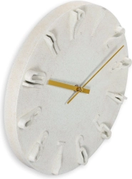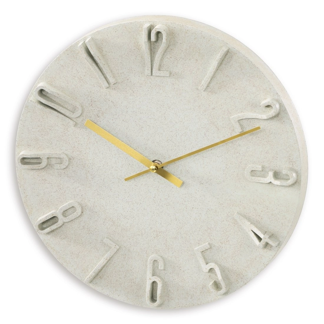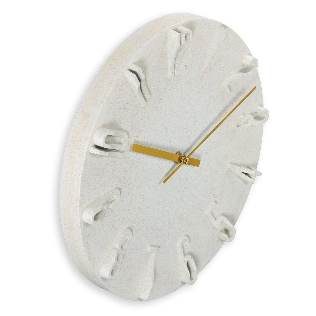 Les élégantes aiguilles dorées contrastent avec le cadran beige légèrement texturé et apportent une touche sophistiquée à votre intérieur. La construction intégrant 20 % de fibres de paille de blé réduit l’impact environnemental, tandis que l’emballage certifié sans plastique facilite le recyclage.