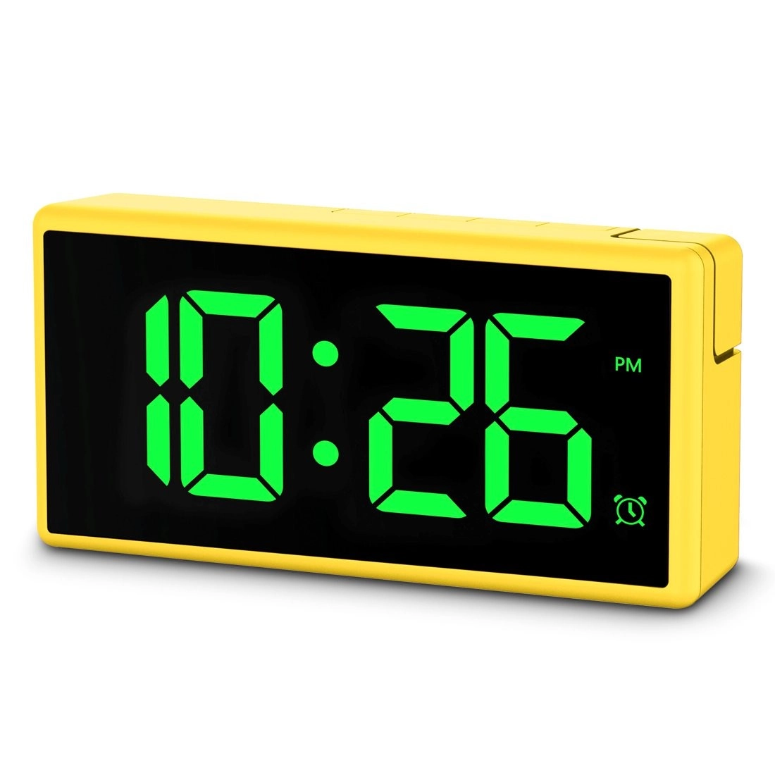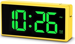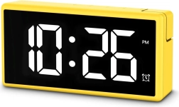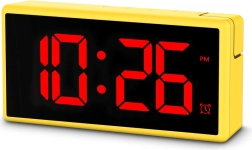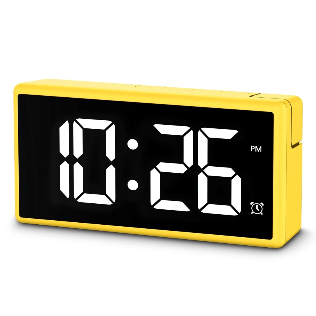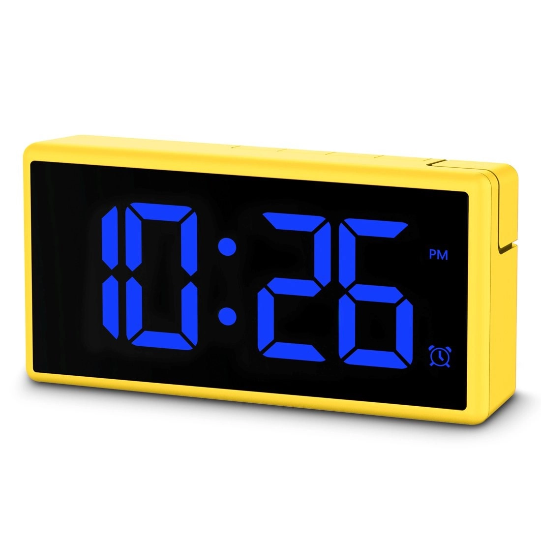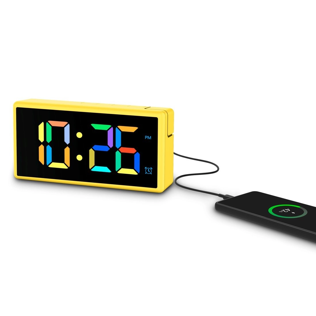 Réveil numérique élégant et pratique en jaune énergisant, doté d’un grand écran LED multicolore, d’une alarme programmable et d’un port USB 1 A pour charger votre téléphone. Grâce à 4 niveaux de luminosité incluant l’extinction totale pendant la charge, au format 12/24 h, à la fonction snooze et au réglage du volume de l’alarme (faible/normal/fort), il est idéal pour la chambre à coucher comme pour la chambre d’enfant.