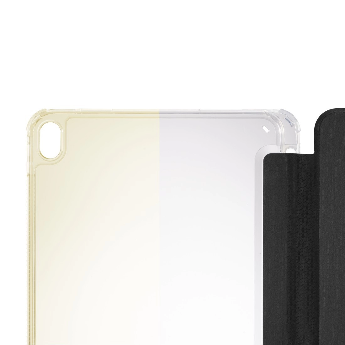 Grâce au dos transparent, l’apparence originale de l’appareil reste visible. Le couvercle offre une fonction support pour écrire confortablement et regarder des vidéos, le réveil/veille automatiques à l’ouverture et à la fermeture, ainsi qu’un porte-stylet pratique. La finition antidérapante et le rainurage latéral assurent une prise ferme, tout en évitant le jaunissement indésirable du matériau.