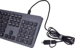 Le clavier filaire Hama CK-400 offre une connexion pratique grâce à des câbles USB-A/USB-C détachables. Ce design permet un changement facile de câble en cas de dommage, augmentant la durabilité et réduisant les coûts. L'adaptateur USB-C vers USB-A offre une large compatibilité.
