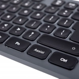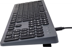 Ergonomie et confort - le clavier avec un mécanisme à ciseaux silencieux dispose d'un rétroéclairage réglable pour un travail confortable dans des environnements sombres. Les pieds rabattables ajustent l'angle du clavier pour un confort optimal.