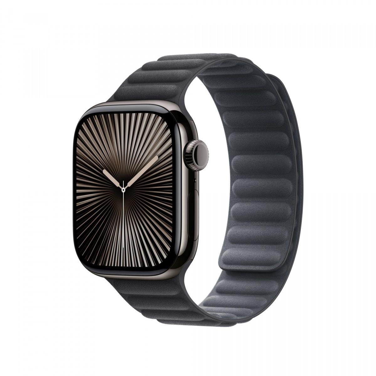 Le bracelet magnétique noir à reliefs, fabriqué en tissu FineWoven doux, épouse élégamment votre poignet. Des aimants spécialement profilés garantissent que le bracelet reste solidement et confortablement fixé toute la journée.