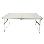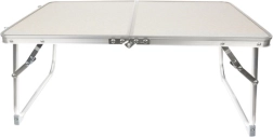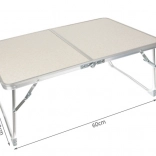 La combinaison d’un plateau en MDF et d’éléments en aluminium est légère, solide et adaptée à une utilisation au jardin comme en camping.