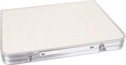 Une fois pliée, la table se transforme en une valisette fine avec poignée, facile à ranger dans le coffre d’une voiture ou d’un camping-car.