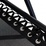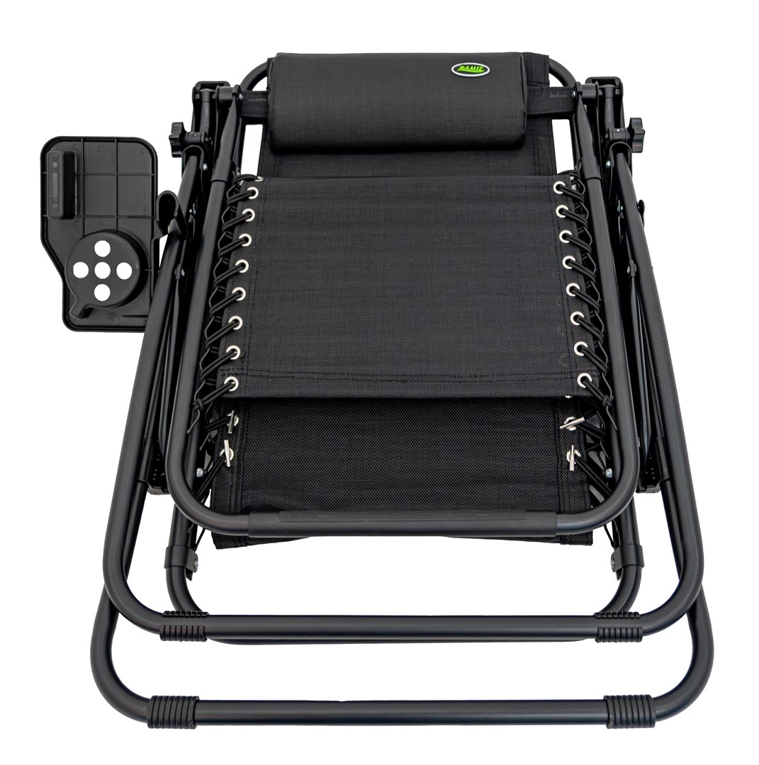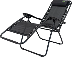 Le cadre robuste en métal avec revêtement par poudre résiste à la corrosion et aux intempéries. La chaise longue se plie rapidement, prend peu de place et se transporte facilement. La tablette latérale pratique accueille boisson, téléphone et petits objets pour tout garder à portée.