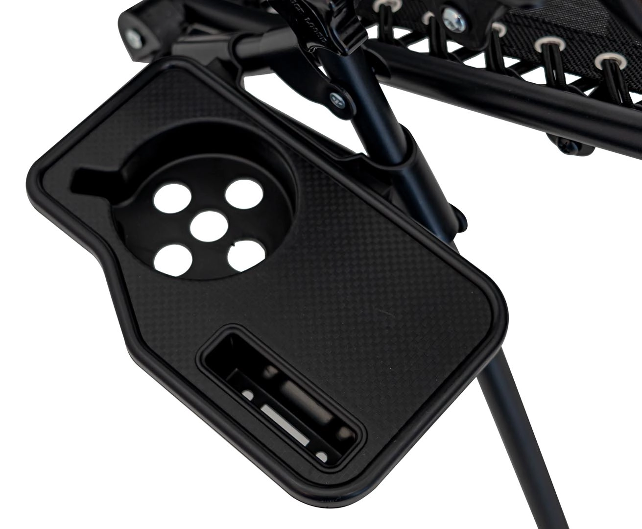 Le plateau de rangement intégré avec porte-boisson et emplacement pour téléphone ou petits objets garde l’essentiel à portée de main – idéal sur la terrasse, le balcon ou au bord de la piscine.