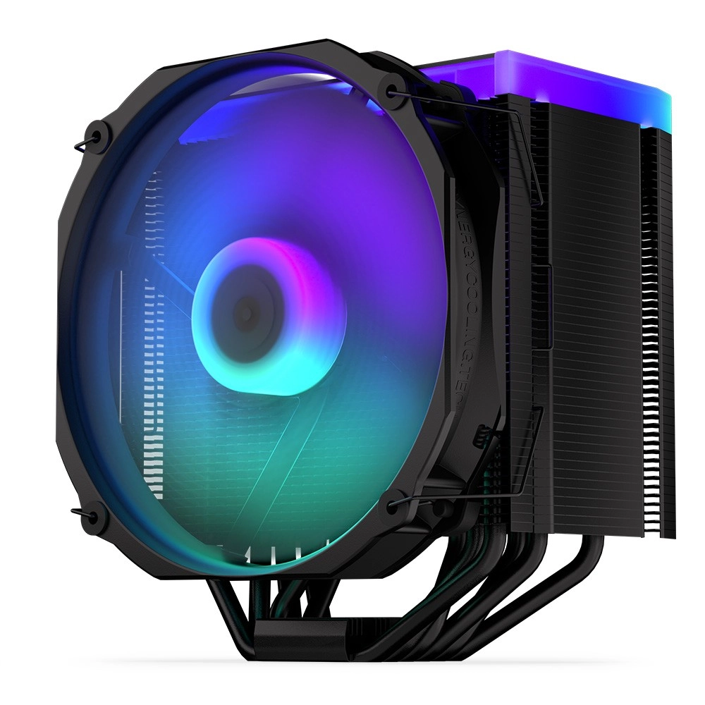 Le Fortis 5 Black ARGB est un système de refroidissement à air noir haut de gamme, développé en collaboration avec Synergy Cooling. Il est équipé du ventilateur Fluctus 140 PWM ARGB avec fonction d’arrêt du ventilateur, d’un radiateur asymétrique à ailettes denses et de six caloducs, assurant un fonctionnement silencieux avec une efficacité de refroidissement maximale.