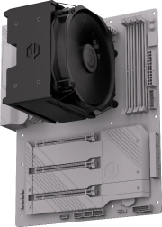 L’ensemble du corps du refroidisseur arbore une finition noire mate pour un look épuré et une intégration facile avec le reste de la configuration. Grâce au système de montage fourni, l’installation est rapide et simple sur plateformes AMD et Intel. Le paquet inclut également une pâte thermique Pactum PT‑3 de haute qualité pour plusieurs applications.
