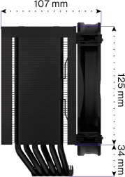 Fortis 5 Black est un refroidisseur CPU robuste conçu pour une efficacité maximale et un bruit minimal. Le radiateur en aluminium à ailettes denses relié à six caloducs en cuivre dissipe parfaitement la chaleur du processeur. L’optimisation pour un flux d’air unidirectionnel garantit des performances de premier plan dans sa catégorie et des températures stables même en charge prolongée.