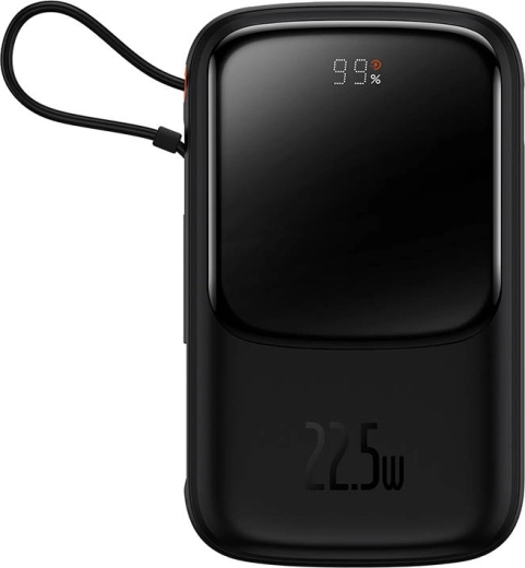 La Baseus Qpow Pro est une batterie externe pratique et compacte, idéale pour les utilisateurs qui ont besoin d’énergie en déplacement. Grâce à son câble USB-C intégré et à deux autres ports de sortie, elle permet de charger jusqu’à trois appareils simultanément, ce qui en fait un assistant polyvalent.