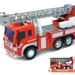 Un camion de pompiers réaliste à friction qui ravira tous les petits sauveteurs. Il offre des effets lumineux et sonores, des boutons fonctionnels sur la cabine et une échelle extensible. Les piles sont incluses, prêt à l’action dès le déballage.