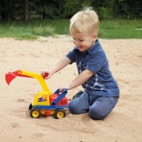 Pelle mécanique colorée pour enfants de 35 cm avec une partie supérieure rotative, un bras fonctionnel et une figurine de conducteur dans la cabine. Elle dispose de 2 essieux, d’un verrouillage de la rotation et d’une poignée pratique derrière la cabine pour une manipulation facile – idéale pour le bac à sable comme pour jouer à la maison.